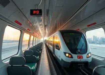Trem da BYD testa trajeto que conectará aeroporto mais movimentado de SP.
